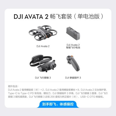 大疆DJI Avata 2 第一视角航拍无人机飞行眼镜体感操控沉浸式飞行体验一键动感花飞超广低空 畅飞套装(三电池版)