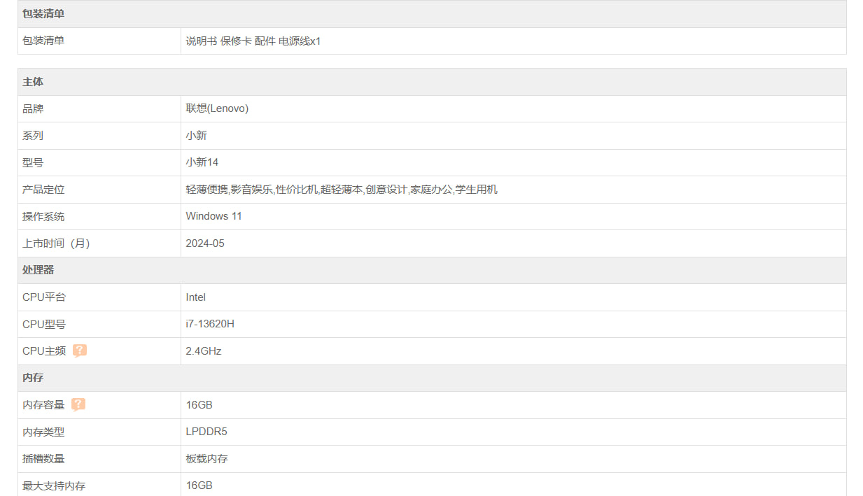 联想笔记本小新14 (i7-13620H/16G/512G/集/14
